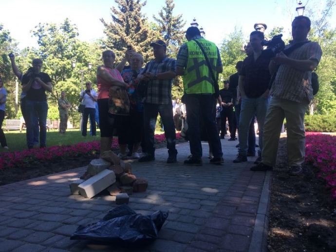 Участники митинга заявили, что выступают за демонтаж памятника, но отметили, что это надо делать на законных основаниях.