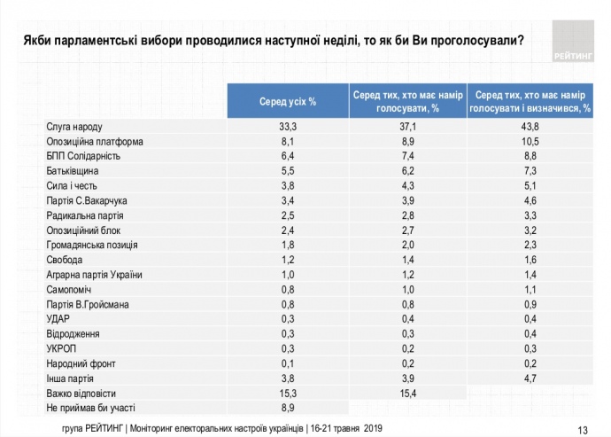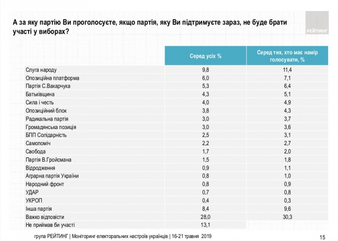 - Партия Вакарчука набирала бы 0,9% голосов тех, кто определился (0,7% голосов всех опрошенных).