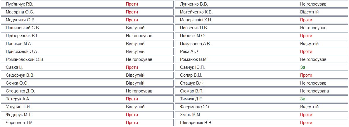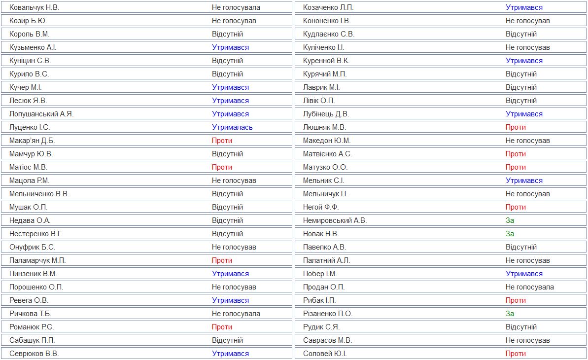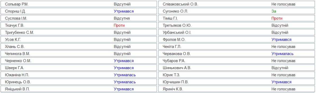 Об этом свидетельствуют подробные результаты голосования, опубликованные на сайте парламента.