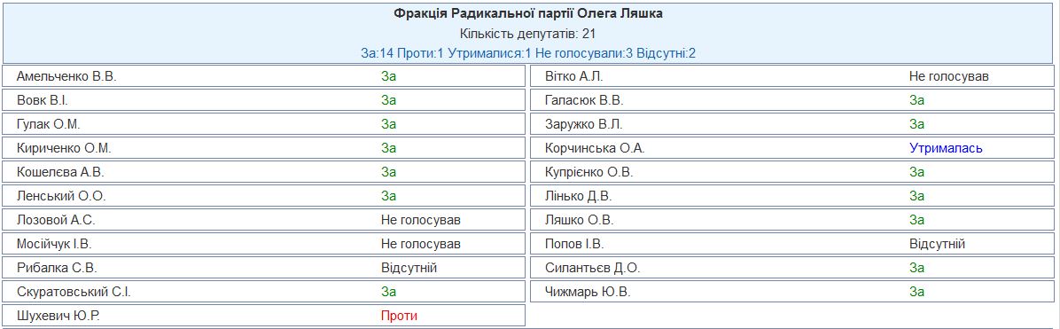 К сторонникам отставки главы правительства присоединилась и фракция Олега Ляшко. 14 из 19 присутствующих ее членов поддержали соответствующий проект постановления.