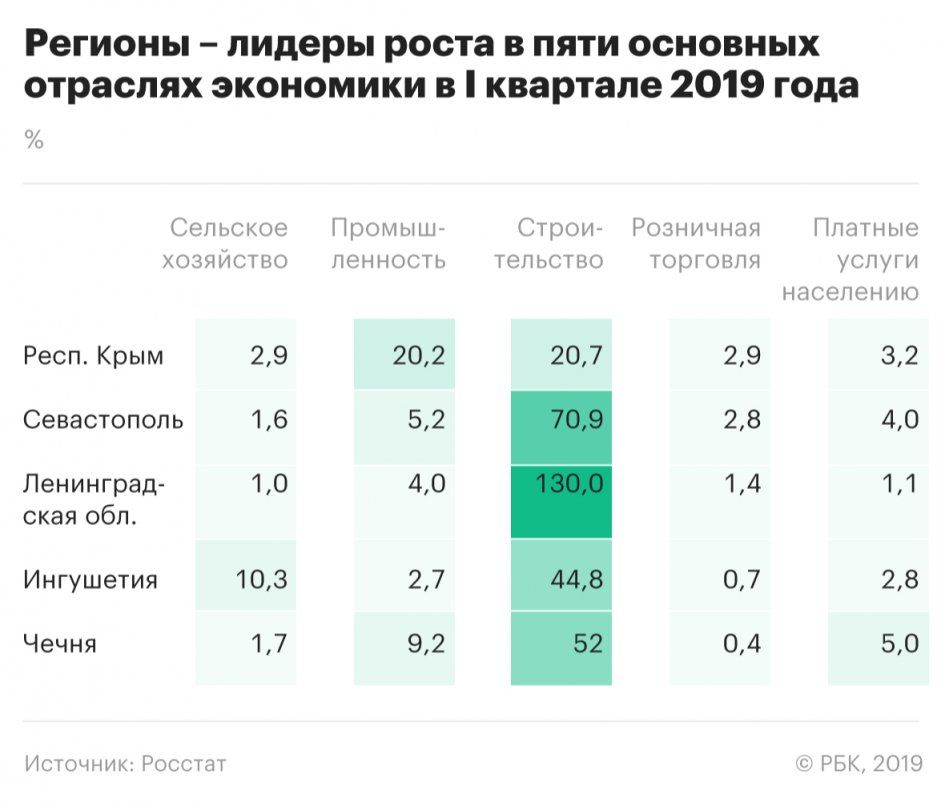 Среди регионов РФ, продемонстрировавших высокие темпы роста, – Ленинградская область, Ингушетия и Чечня.