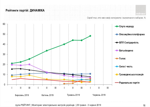 - По данным предыдущего опроса, проведенного с 15 по 31 мая, в парламент проходили только четыре партии. "Слугу народа" готовы были поддержать 30,8% из всех опрошенных.