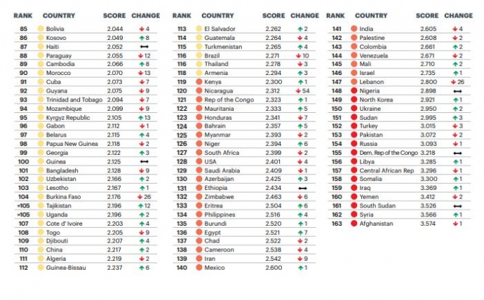 Всего в рейтинге 163 страны.