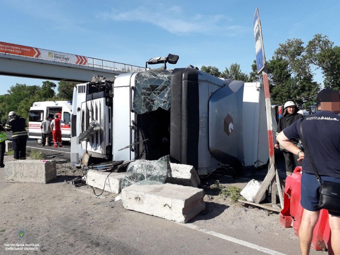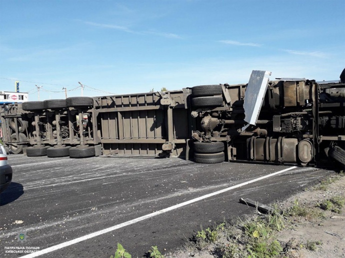 На трассе Киев-Одесса перевернулся грузовик и перекрыл дорогу