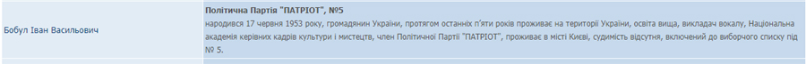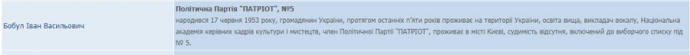 Отмечается, что Бобул включен в избирательный список "Патриота" под № 5.