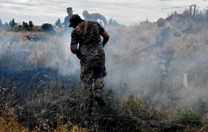 "Сильнее пламя и едкий дым подбирались к позициям наших защитников. Большую опасность несло то, что начали детонировать неразорвавшиеся снаряды, оставшиеся с тех пор, когда мирный город начали обстреливать оккупационные войска РФ", - подчеркнули в штабе.