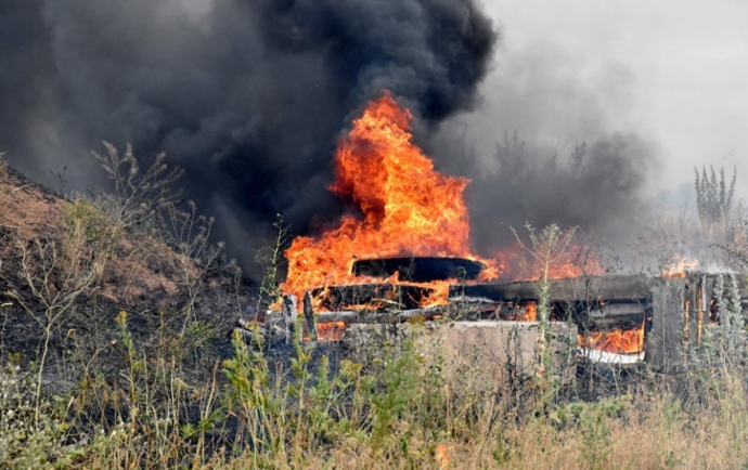 Отмечается, что загорелась сухая трава возле сел Широкино и Бердянское. Местные жители села Бердянское утром начали тушить пожар, который угрожал их домам и посевам.