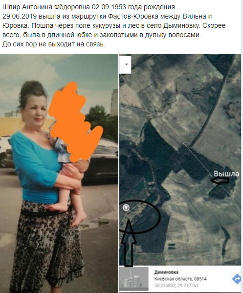 "3 июля в Макаровском районе нашли женщину, которая предварительно считалась без вести пропавшей. На прошлой неделе она поехала на дачу и не вернулась. Проводились оперативно-розыскные мероприятия. Ее нашли знакомые, которые прочесывали местность после исчезновения. В кукурузном поле", - рассказал спикер полиции Киевщины Николай Жукович.