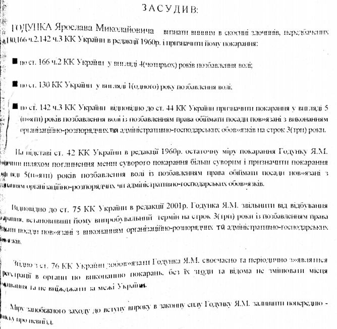 В то же время, как свидетельствует приговор, которым Годунка приговорили к условному сроку, он частично признал свою вину, среди смягчающих обстоятельств указано его "искреннее раскаяние".
