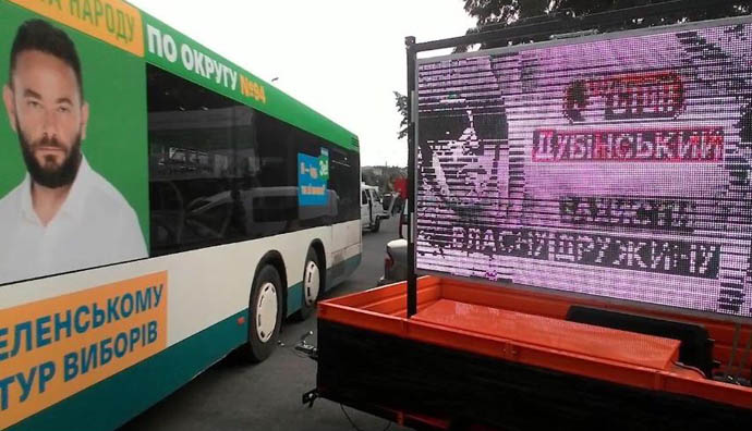 Сообщается, что неизвестные в Обухове раздавали прохожим газеты с контрагитацией и демонстрировали видеоролик с антирекламой на кандидата в народные депутаты от "Слуги народа".