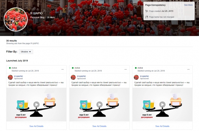 "Специально ко "дню тишины" и дню выборов была создана страничка "Партии Шария". Страница с 20 июля транслирует 36 рекламных сообщений в поддержку этой партии", - пишет ЧЕСНО.