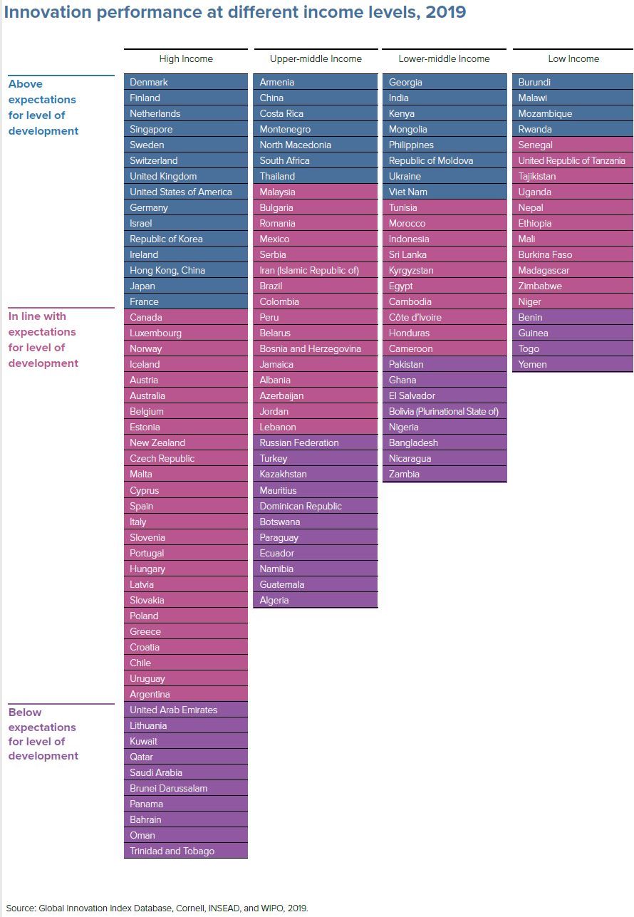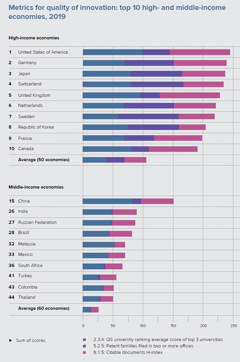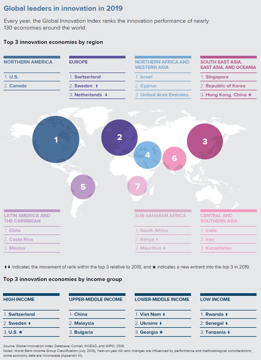 В отчете WIPO за 2018 год Украина была первой по уровню инноваций среди стран своей группы и занимала 43 позицию.