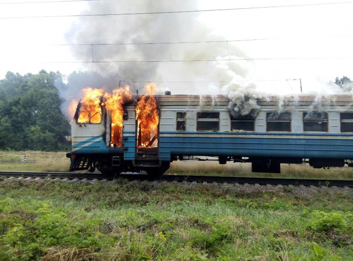 Чрезвычайники получили сообщение о пожаре в 9.42. Отмечается, что вблизи села Тартак Жмеринского района загорелся хвостовой вагон электрички.
