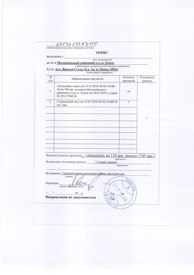 В САП обратили внимание на то, что Малиновский райсуд Одессы в приговоре не принял решение о производстве в отношении ООО "Девелопмент Элит".