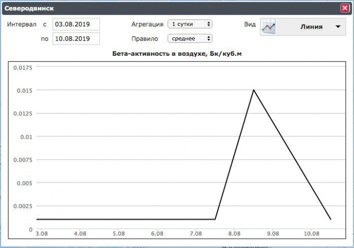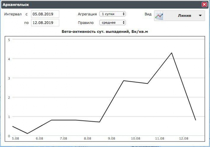 Дословно: "До широкой общественности оперативно не была донесена информация о том, что Росгидромет зафиксировал повышенный уровень не только гамма-, но и бета-излучения, причём не только в Северодвинске (8 августа), но и в Архангельске в виде выпадений (уровень вырос 9 августа, значения оставались повышенными 10 и 11 августа).