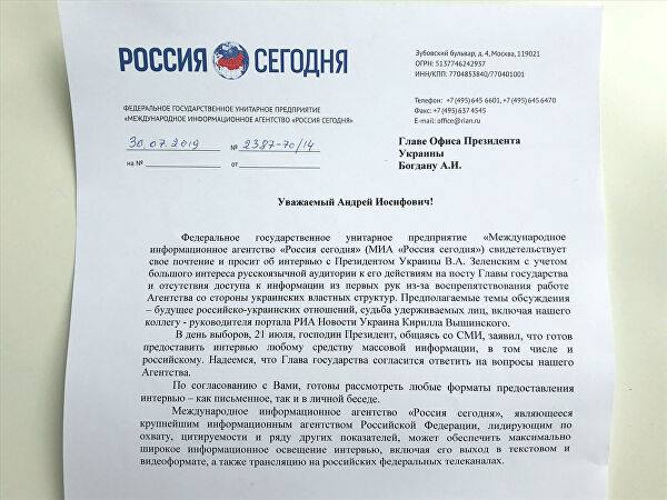 Российский ресурс "РИА Новости" обратилось в офис Зеленского с просьбой ответить на вопросы в любом формате еще в начале июля.