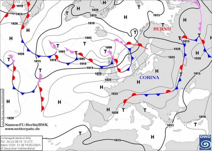 Украина 22 августа окажется в зоне борьбы антициклона Corina, поэтому в большинстве областей ожидается порывистый ветер.