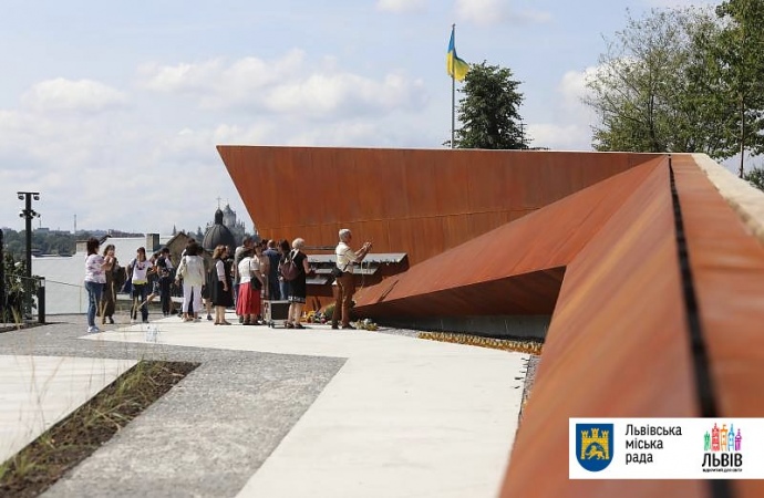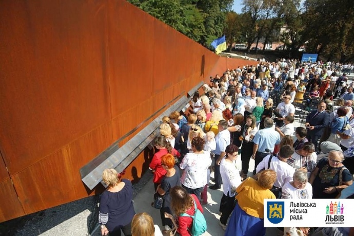 В День госфлага во Львове на улице Кривоноса-Замковой открыли первую часть Мемориала памяти героев Небесной сотни.