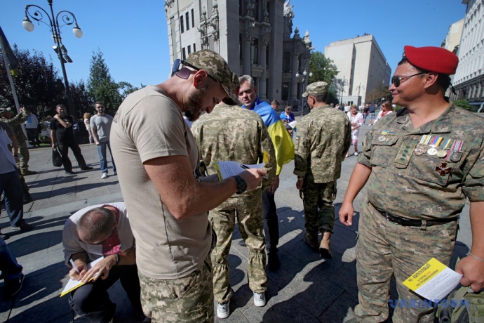 Также активисты требовали "растолковать" высказывание президента о "другой стороне" во время недавнего комментирования российско-украинской войны, и призвать парламент восстановить ликвидированный Комитет ВР по делам ветеранов.