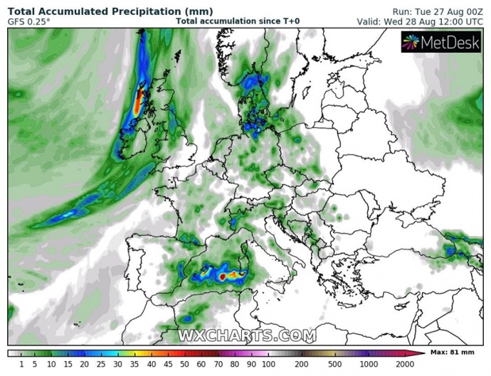 Детали: В среду, 28-го августа, температура воздуха на Западе и Юге, +28+33 градуса. На Севере, Востоке и в большинстве центральных областей ожидается +24+29 градусов.