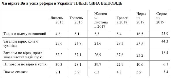 При этом сейчас из этих 70% украинцев: 25,9% – уверены в успехе реформ, еще 44,3% вообще верят, хотя и имеют определенные сомнения.