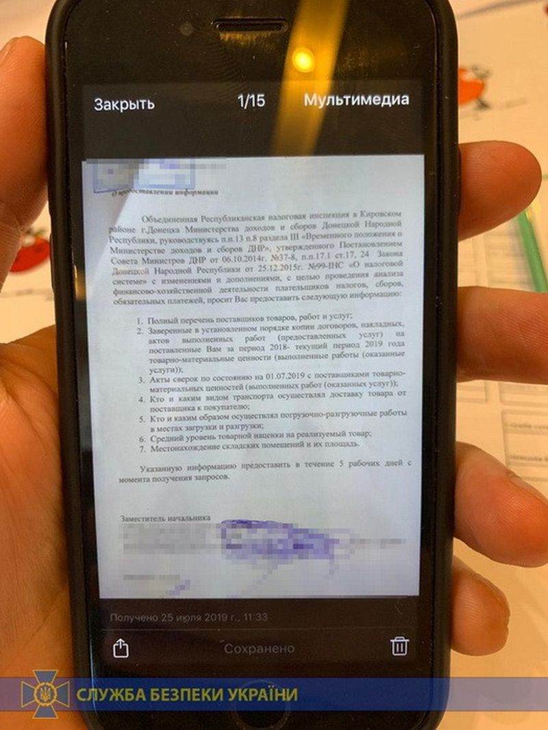 Обнаружены также мобильные телефоны с перепиской о проведении незаконной деятельности, компьютеры и серверное оборудование, на которых хранятся данные о деталях функционирования механизма, документация финансово-хозяйственного характера, свидетельствующая о взаимодействии фигурантов с представителями "ДНР", а также документы об операциях по выводу средств подконтрольных предприятий в теневой оборот.