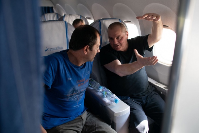 Офис президента Украины обнародовал фото с самолета, на котором 35 украинцев - пленные моряки и политзаключенные - вернулись домой в рамках взаимного освобождения Украиной и РФ удерживаемых лиц.