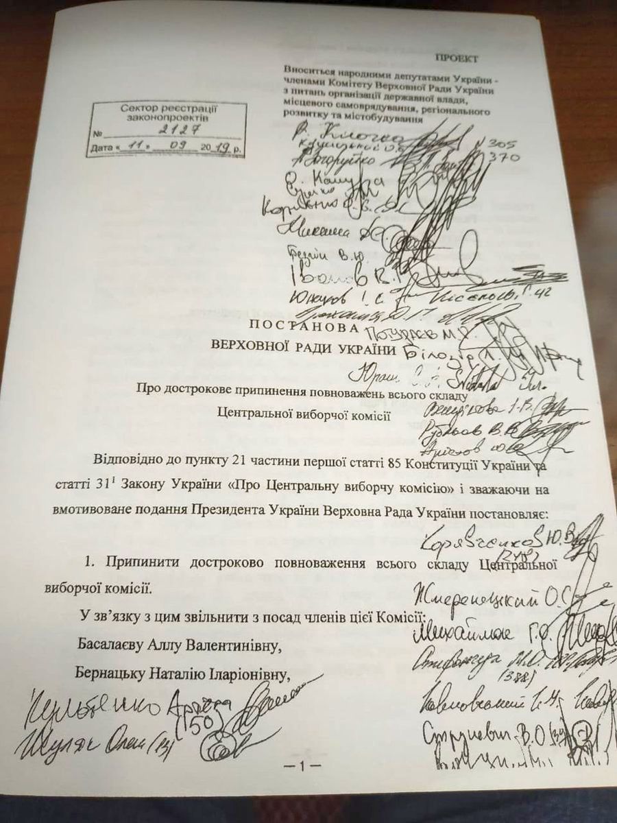 - 9 сентября президент Владимир Зеленский направил в Верховную Раду представление о досрочном прекращении полномочий ЦИК.