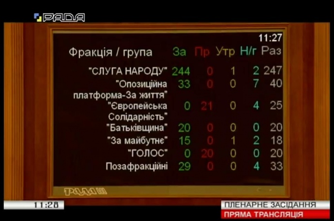Фракции "Европейская солидарность" и "Голос" не дали ни одного голоса.