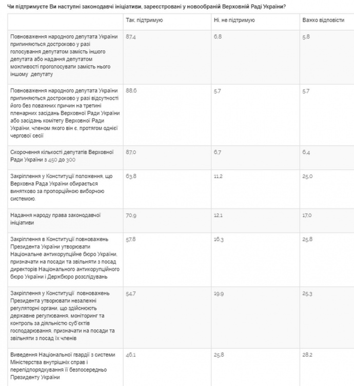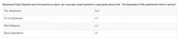 Детали: Отмену неприкосновенности народных депутатов поддерживают 89,6% респондентов.