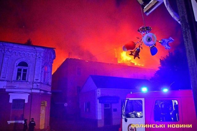 Пожар в Луцком военном госпитале уничтожил крышу и верхний этаж