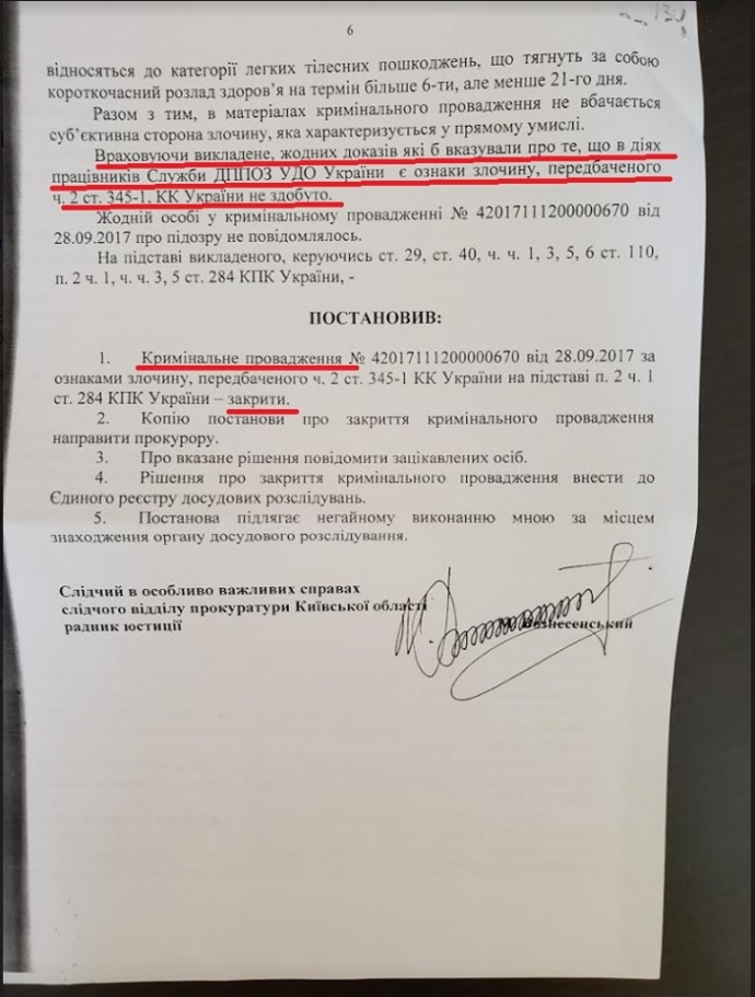 Дословно: "Дело о препятствовании нашей журналистской деятельности УДОшниками на свадьбе сына генпрокурора Луценко закрыто.