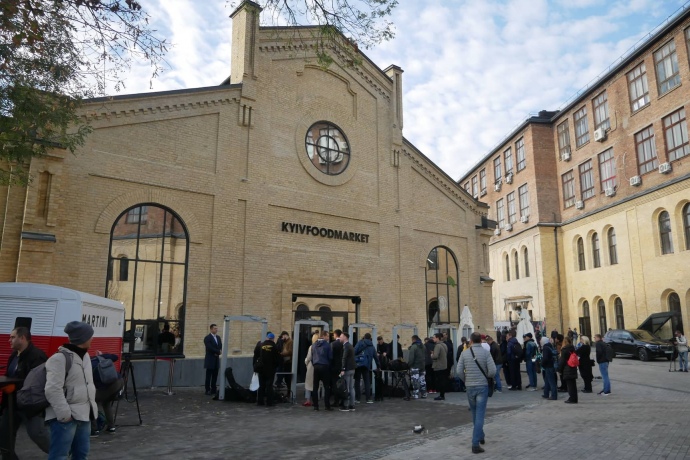 У здания бывшего завода "Арсенал", где ныне расположен FoodMarket, собираются журналисты – в 10:00 на фудкорте должна начаться встреча с президентом Владимиром Зеленским.