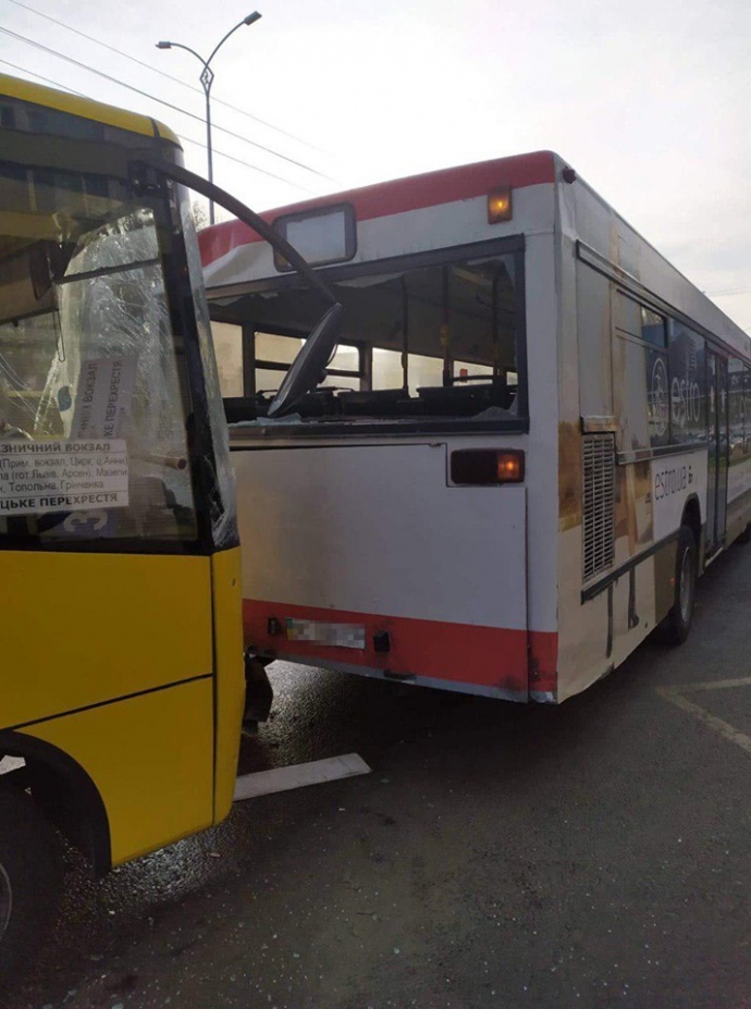 Во Львове на проспекте Черновола столкнулись два маршрутных автобуса, в результате ДТП за медицинской помощью обратилось десять человек.