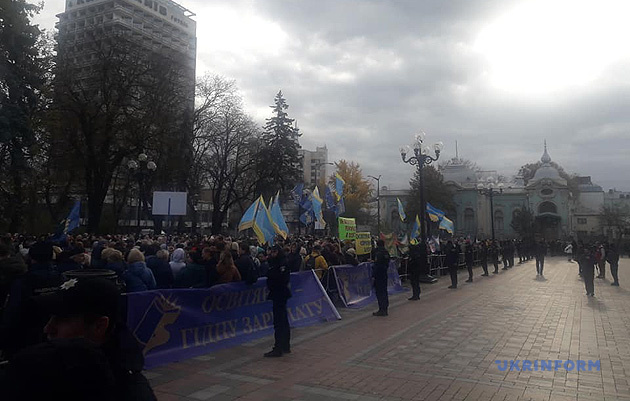 Детали: Из Рады к митингующим вышел председатель фракции "Голос" Святослав Вакарчук, председатель комитета ВР по вопросам образования, науки и инноваций нардеп "Слуги народа" Сергей Бабак и члены комитета Сергей Колебошин (СН) и Инна Совсун ( "Голос").