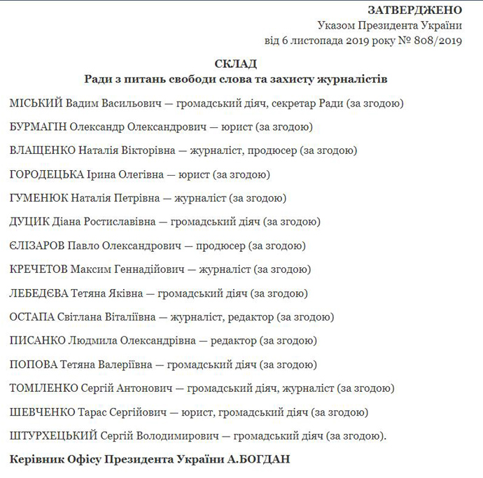 Зеленский создал совет по вопросам свободы слова и защиты журналистов. Состав