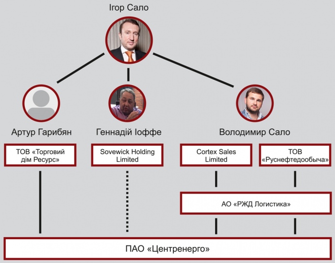 Сало связывают с кипрской Sovewick Holding Limited, которая в 2015 году заключила контракт с ПАО "Центрэнерго" на 2 млрд грн, Cortex Sales Limited из Гонконга и московским ООО "Руснефтедообыча", которые поставляют уголь для украинских ТЭЦ.