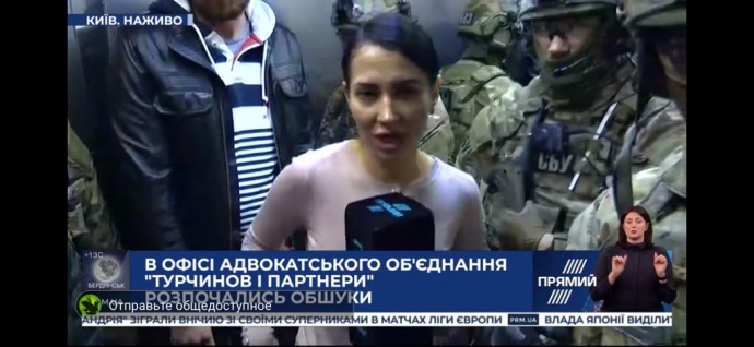 Детали: Телеканал "Прямой", который тоже имеет офис в этом бизнес-центре, в своем эфире даже показал картинку с людьми в камуфляже и нашивками СБУ. По данным их корреспондентов, силовики пришли в адвокатское объединения "Турчинов и партнеры".