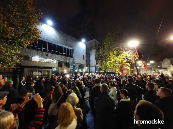 В Киеве под посольством Польши проходит акция в поддержку задержанного по запросу России сотрудника секретариата Уполномоченного Верховной Рады по правам человека, добровольца Игоря Мазура с позывным "Тополя".