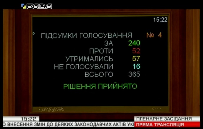 Соответствующее решение на заседании Верховной Рады 13 ноября поддержали 240 народных депутатов.