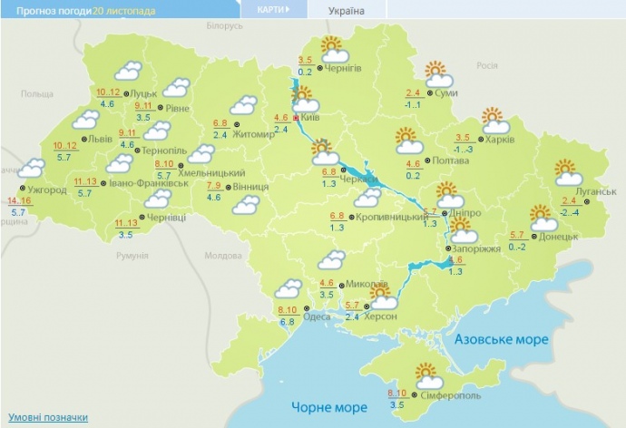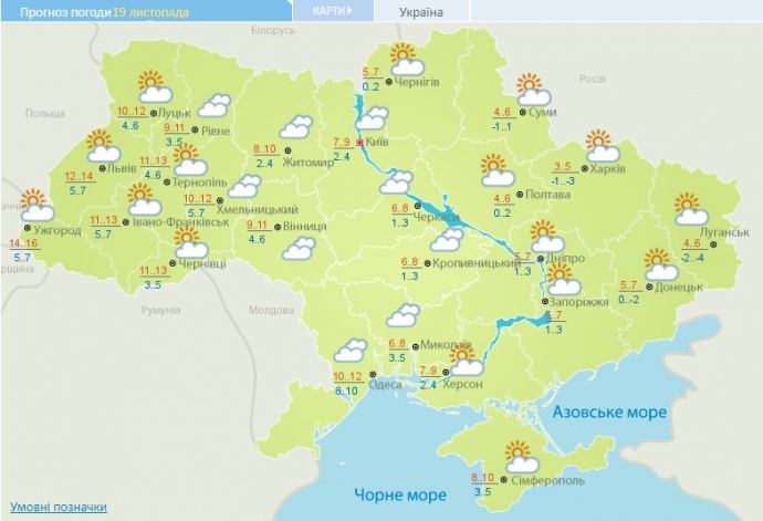 18 ноября в Украине в течение дня ожидается +6 +11 градусов, на Западе +12 +16 градусов.