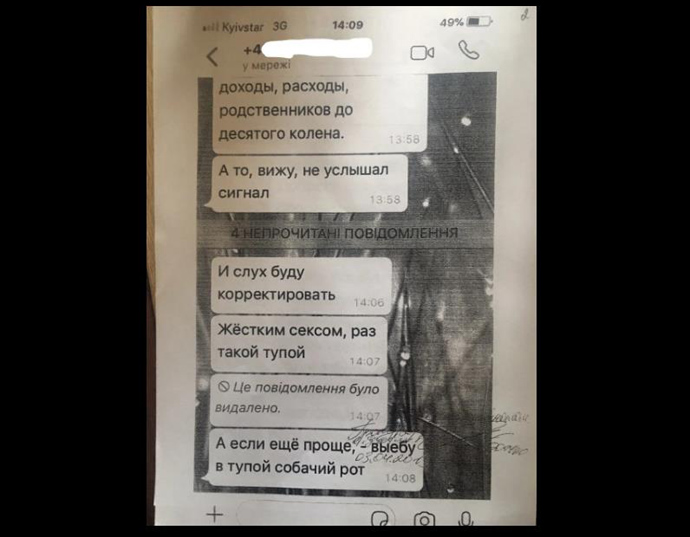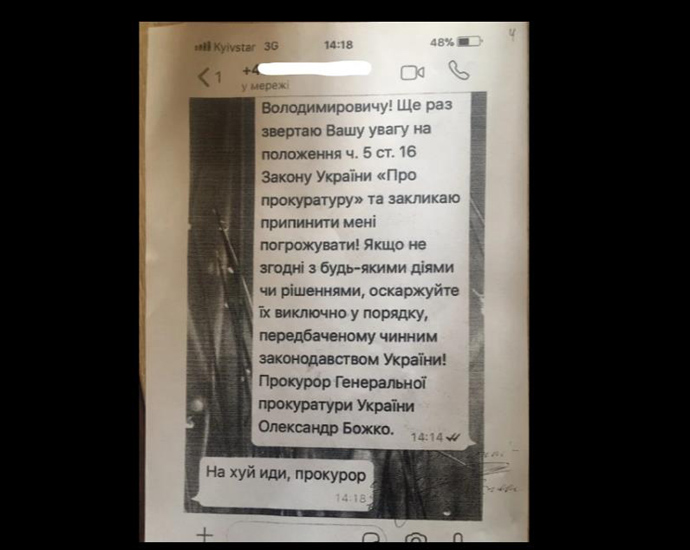 Также "Слідство.Інфо" получило распечатки сообщений с телефона еще одного следователя из Генпрокуратуры за 2017-й год, который больше не работает в ГПУ.