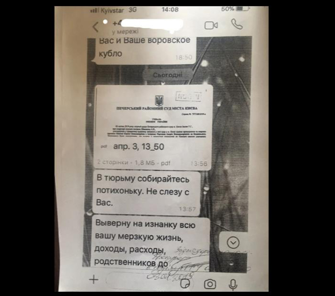 В частности, в 2017 году Горбатюк получил сообщение: "Я тебя в клетке возить и показывать как обезьяну. Я тебе пишу, чтобы ты знал, что у меня претензии именно к тебе. Чтобы ты знал, что спрошу именно с тебя. Время твое заканчивается, а спрашивать с тебя я буду очень жестко".