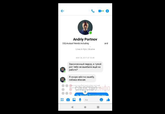 В 2017 году Горбатюк также неоднократно получал в WhatsApp и в Facebook угрозы от Портнова.