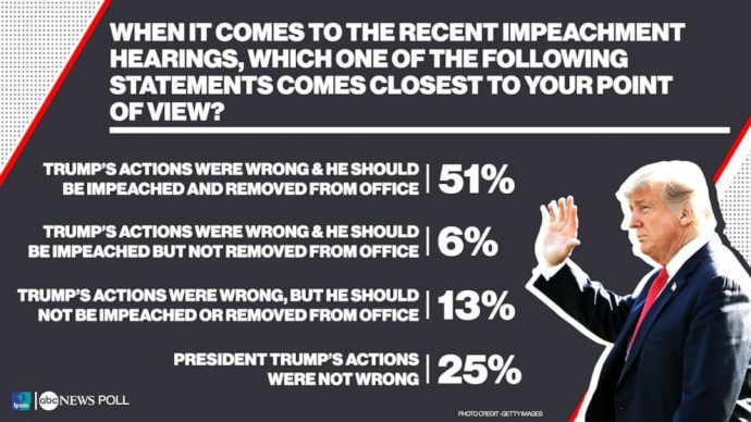 Детали: 51% опрошенных заявили, что Трамп поступил плохо, обвинения в отношении него в рамках импичмента справедливы и его за это следует отстранить от должности.