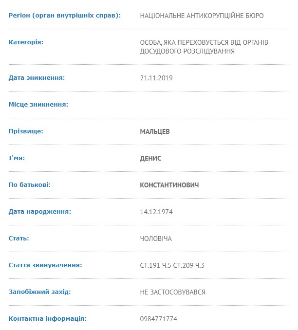 Детали: В базе розыска датой исчезновения значится 21 ноября, тот же день, когда исчез экс-владелец VAB Банка Олег Бахматюк.