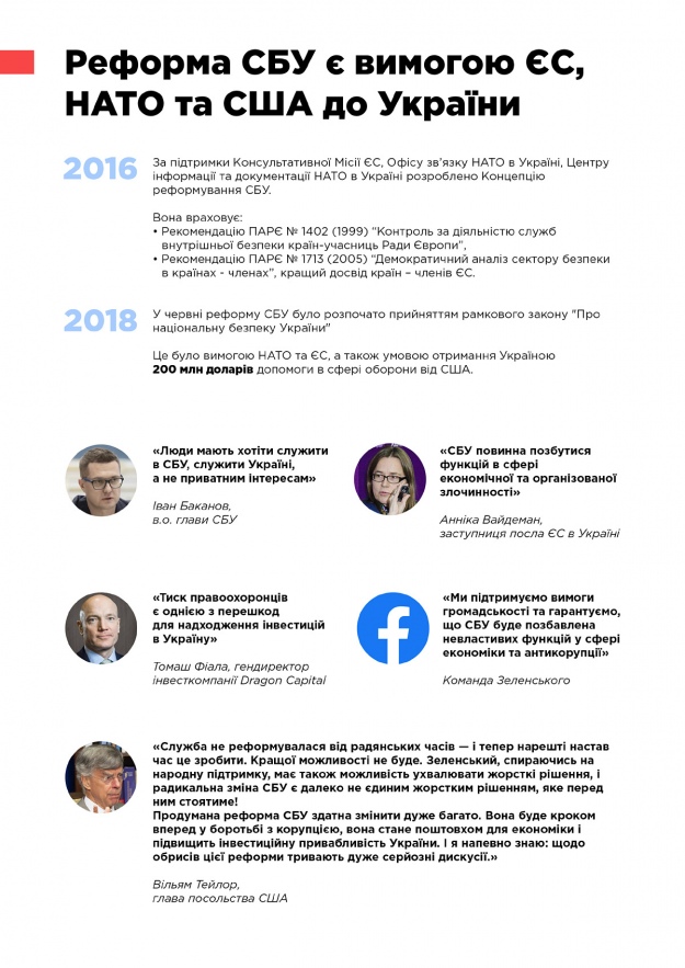 - В СБУ заявили, что проводят системную реформу ведомства: в частности функциональный аудит собственных структурных подразделений для определения эффективности их работы. Целью проверки является также оптимизация численности СБУ с учетом обеспечения надлежащего уровня государственной безопасности.
