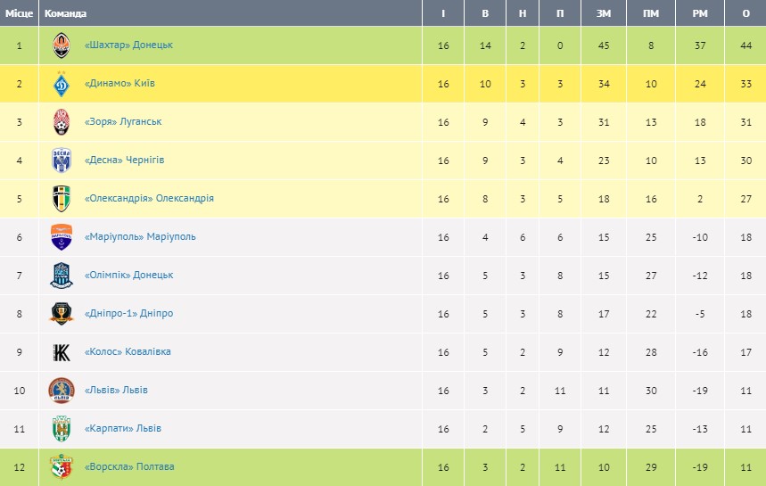 Другие матчи 16 тура завершились со следующими результатами: "Львов" - "Днепр-1" - 0:2, "Заря" - "Карпаты" - 2:0, "Ворскла" - "Колос" - 1:0, "Десна" - "Александрия" - 2:0, "Шахтер" - "Мариуполь" - 1:1.