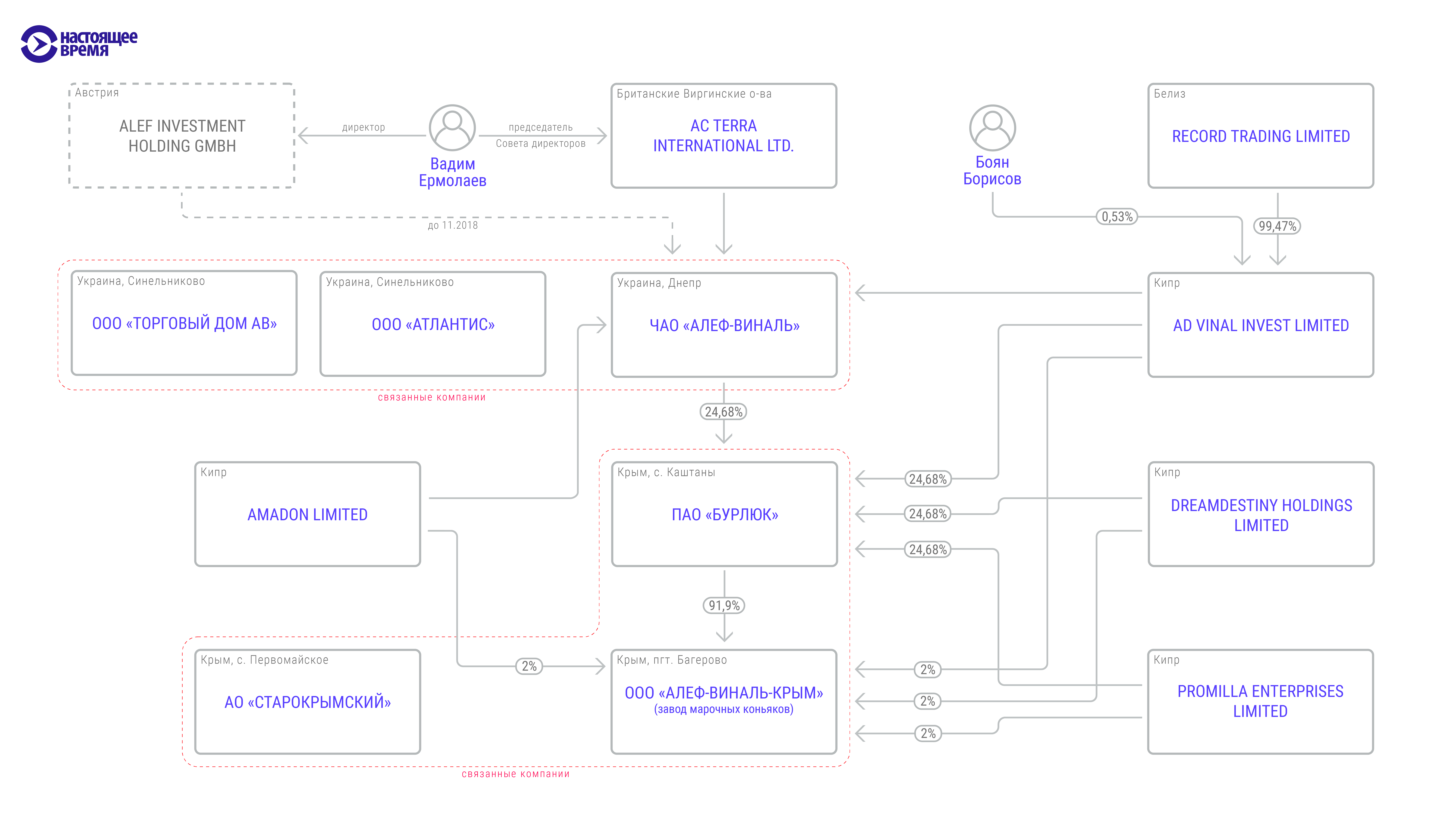 При этом среди учредителей группы по-прежнему остаются компании из Кипра, Британских Виргинских островов, а до 2018 года среди опосредованных учредителей была компания из Австрии. Таким образом они нарушили санкции Евросоюза, которые с лета 2014 года запрещают европейским компаниям открывать новый бизнес в аннексированном Крыму.