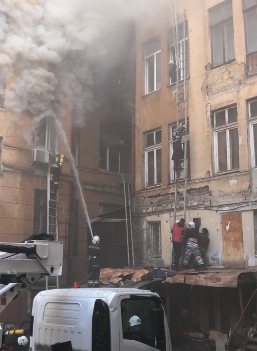 В Одесском колледже экономики, права и гостинично-ресторанного бизнеса возник пожар, проводится эвакуация из здания.